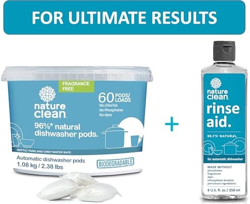 Nature Clean Dishwasher Pacs are high performing without the use of chlorine, phosphates, perfumes, dyes or animal by-products. This product is vegan, gluten-free, kosher, septic and grey water safe. Biodegradable and not tested on animals.Seeing Yellow Specs in Your Dish Pacs? Same Great Natural Cleaning Power Just a Different Colour!